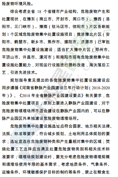 為深入貫徹習(xí)近平生態(tài)文明思想,全面落實(shí)《中共河南省委河南省人民政府關(guān)于全面加強(qiáng)生態(tài)環(huán)境保護(hù)堅(jiān)決打好污染防治攻堅(jiān)戰(zhàn)的實(shí)施意見》(豫發(fā)﹝2018﹞19號),根據(jù)《河南省人民政府印發(fā)河南省污染防治攻堅(jiān)戰(zhàn)三年行動計(jì)劃(2018—2020年)的通知》(豫政﹝2018﹞30號)要求,我廳起草了《河南省危險廢物集中處置設(shè)施建設(shè)布局規(guī)劃指導(dǎo)意見》,現(xiàn)印發(fā)給你們,請結(jié)合實(shí)際,認(rèn)真抓好落實(shí)。