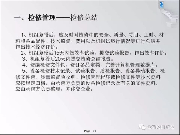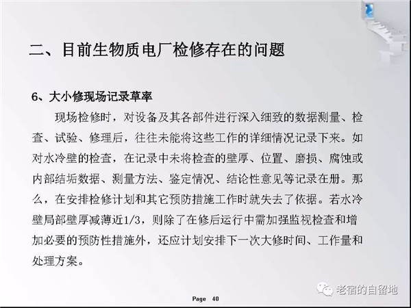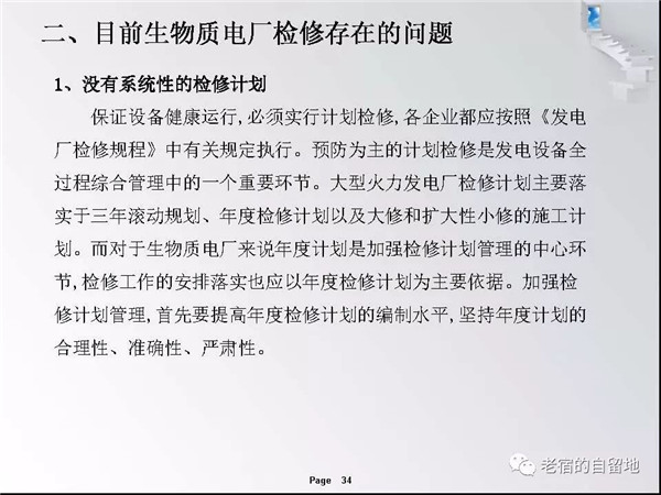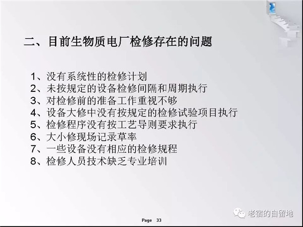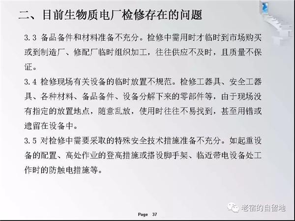 隨著國家對生物質能開發(fā)總是和支持,近幾年生物質發(fā)電得以迅猛發(fā)展。在企業(yè)運營過程中,比較突出的問題是有的企業(yè)對設備檢修維護工作重視不夠,導致設備故障率高、運行周期短、效率低,個別單位的設備甚至到了不破不修,不壞不修的狀態(tài)、嚴重影響了安全經濟運行,對企業(yè)生存發(fā)展造成了重大影響。下面就生物質發(fā)電企業(yè)檢修管理和重點關注方面進行交流。