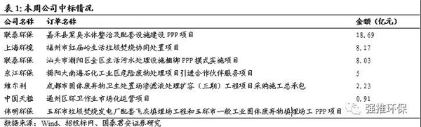 三、本周環(huán)保上市公司新增訂單回顧