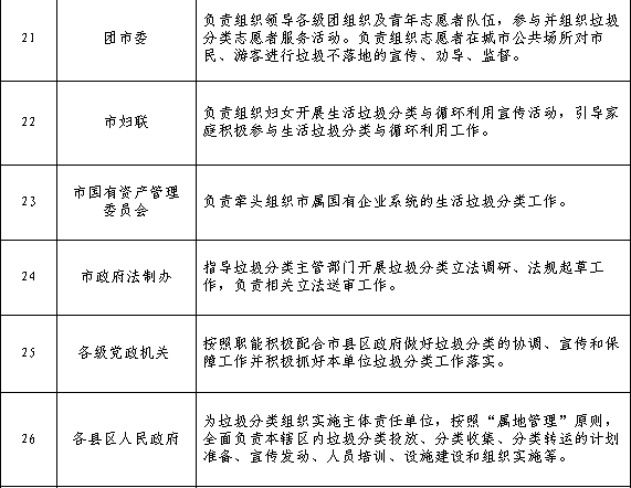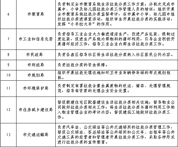 開封市生活垃圾分類工作任務分解表