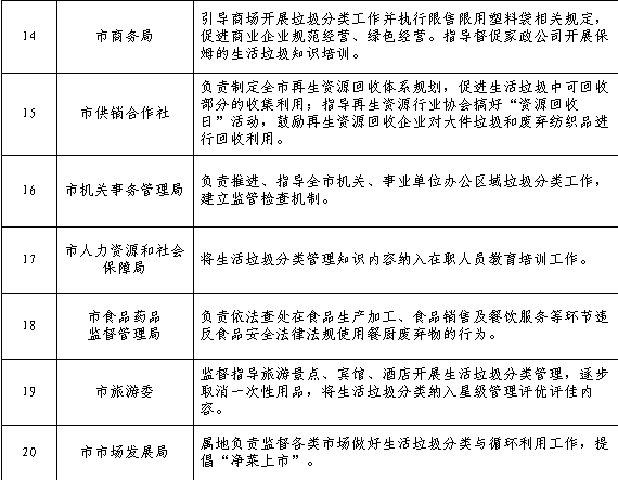 2020年前,在市城區(qū)、縣城區(qū)范圍內(nèi)實施生活垃圾強制分類。實施垃圾強制分類區(qū)域內(nèi)以下主體,負責對其產(chǎn)生的生活垃圾進行分類。