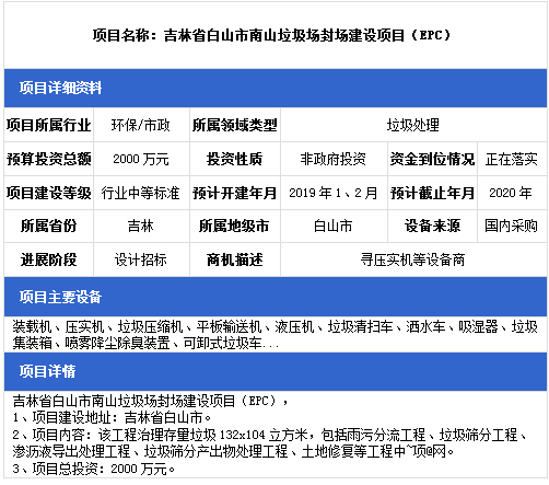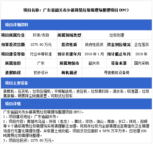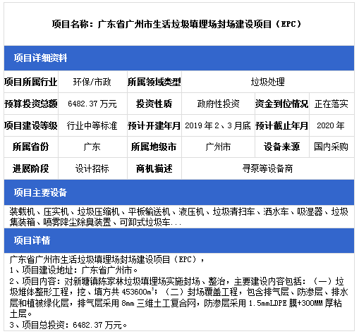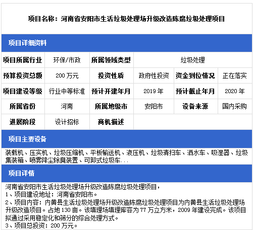 中項(xiàng)網(wǎng)獨(dú)家授權(quán)北極星固廢網(wǎng)發(fā)布最新垃圾處理項(xiàng)目(2019年1月14日更新),其中包括垃圾填埋場項(xiàng)目、餐廚垃圾處理項(xiàng)目、生活垃圾中轉(zhuǎn)站建設(shè)項(xiàng)目等。具體內(nèi)容如下: