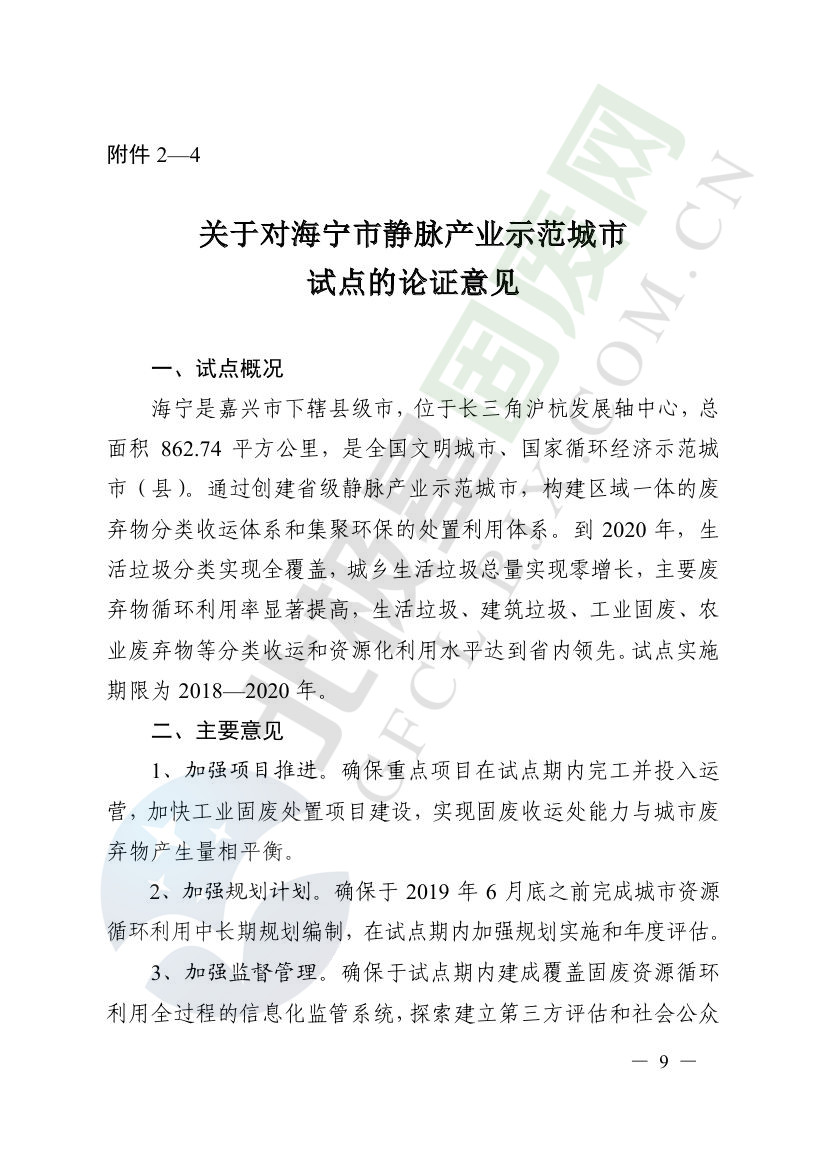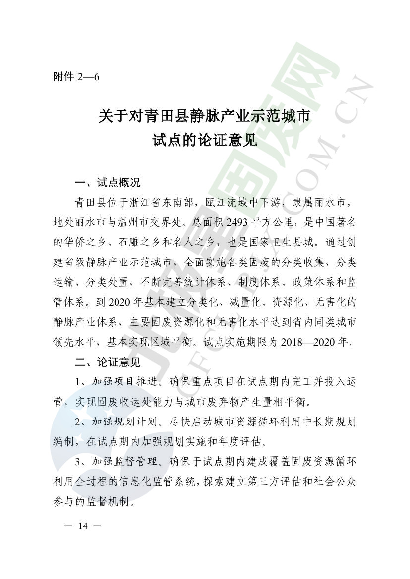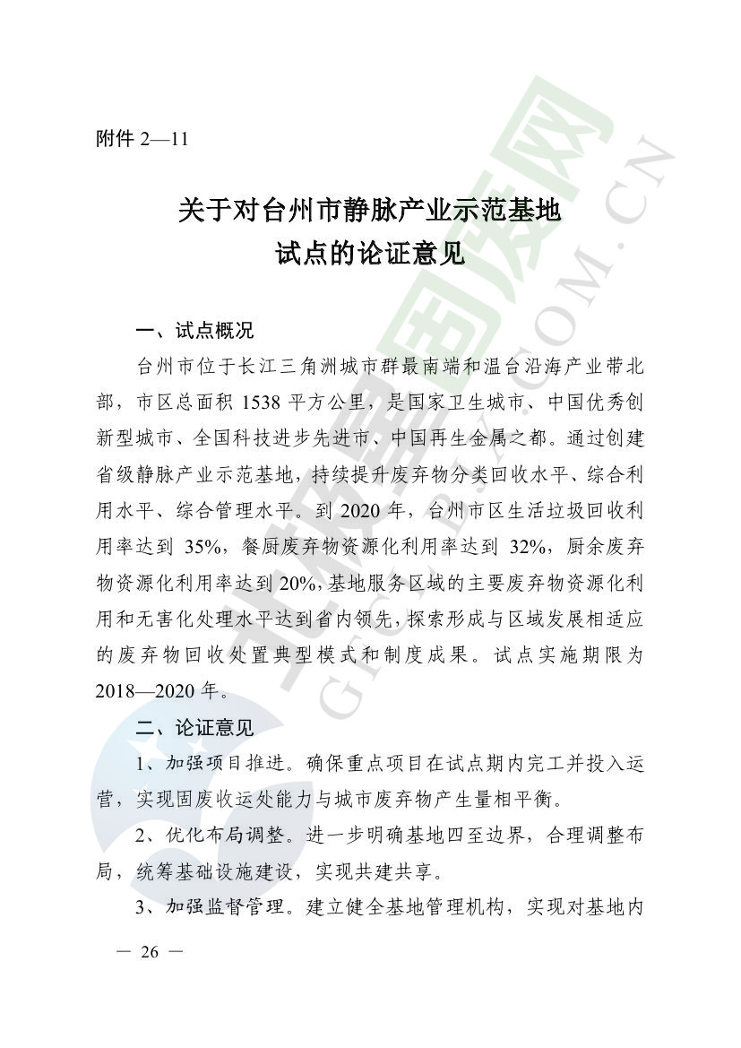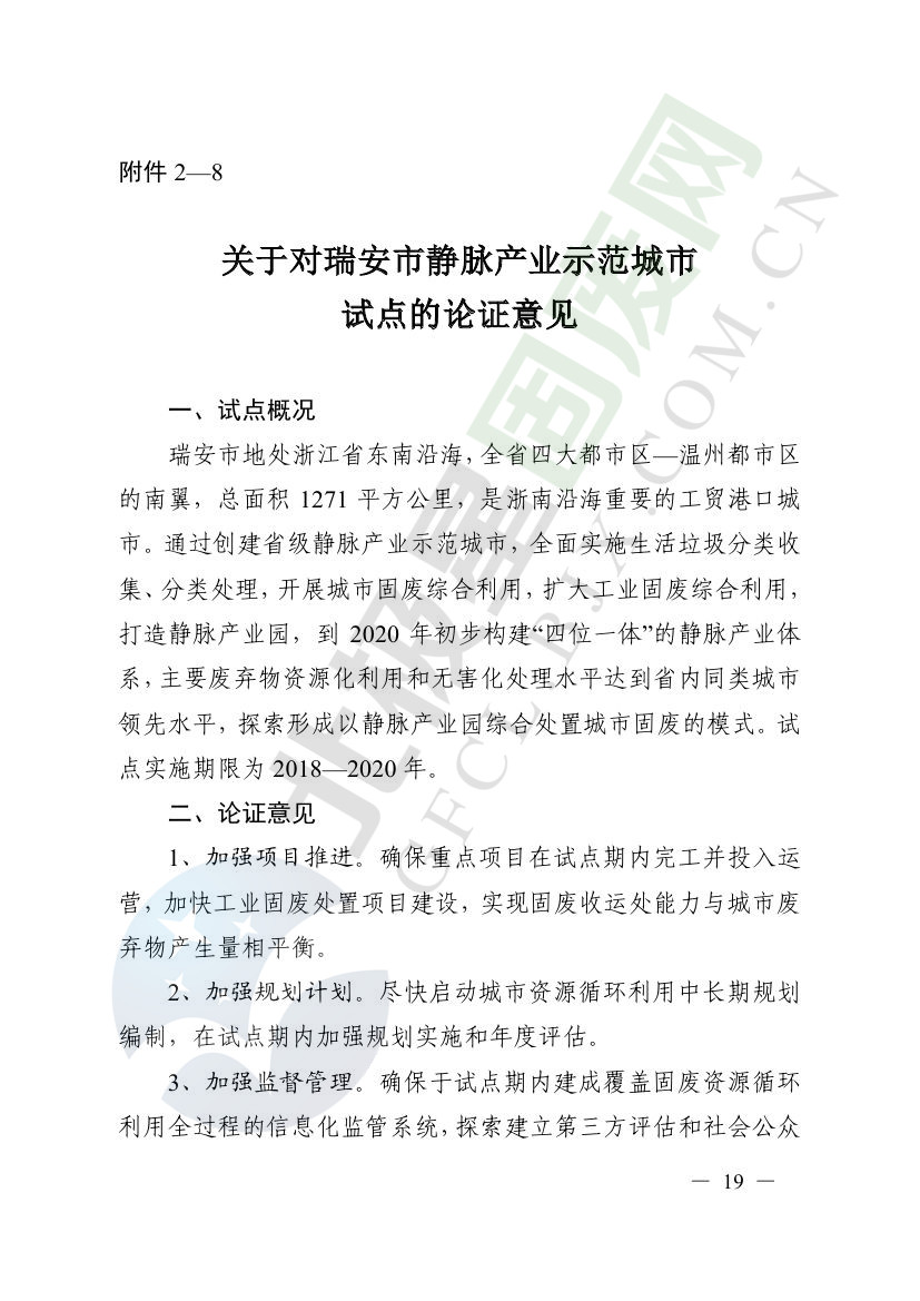 一、原則同意麗水市等8個城市和衢州市等3個基地的試點實施方案,并確定麗水市等4個城市為省級靜脈產(chǎn)業(yè)示范城市試點(創(chuàng)建類),衢州市等2個基地為省級靜脈產(chǎn)業(yè)示范基地試點(創(chuàng)建類),金華市等4個城市為省級靜脈產(chǎn)業(yè)示范城市試點(培育類),臺州市為省級靜脈產(chǎn)業(yè)示范基地試點(培育類),具體名單詳見附件1。請根據(jù)意見(附件2)認(rèn)真修改完善試點方案,于12月22日前將修改完善后的實施方案(附光盤)(一式2份)報送省發(fā)展改革委、省財政廳、省生態(tài)環(huán)境廳、省建設(shè)廳、省農(nóng)業(yè)農(nóng)村廳、省商務(wù)廳備案。