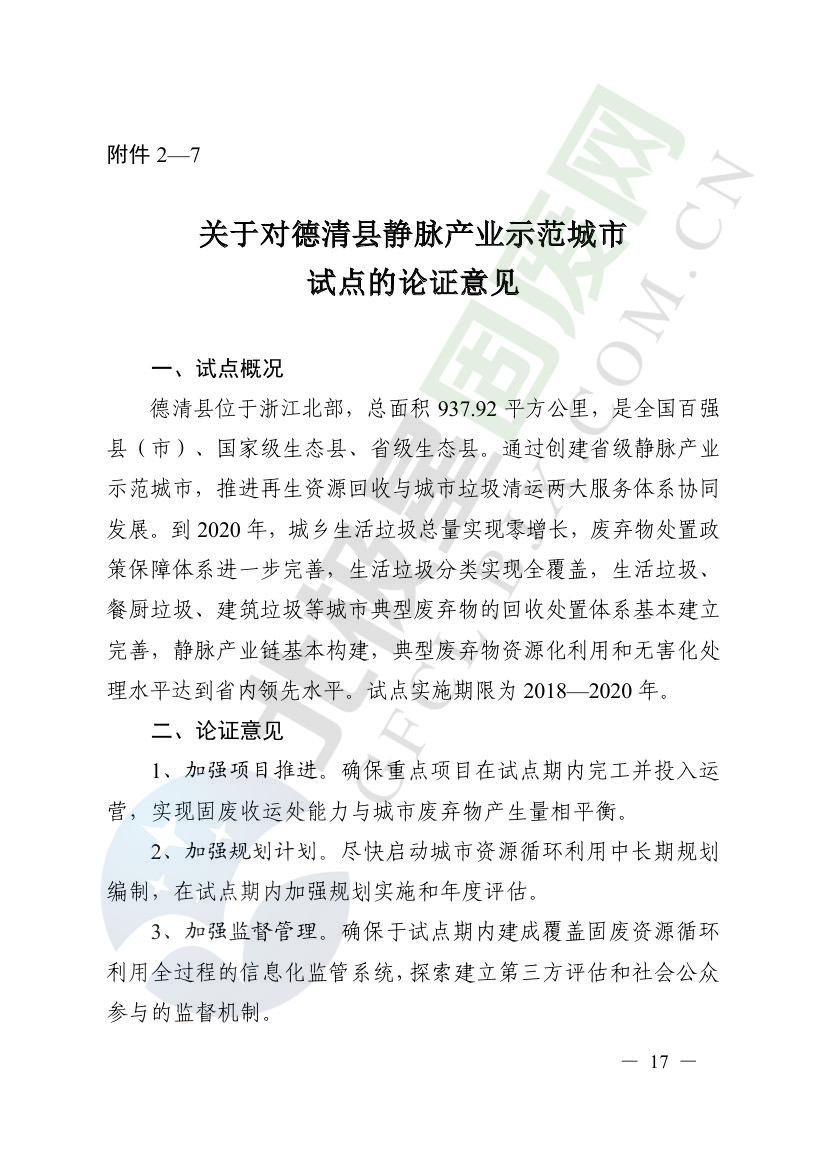 根據(jù)省發(fā)展改革委、省財政廳、省建設(shè)廳、省生態(tài)環(huán)境廳、省農(nóng)業(yè)農(nóng)村廳、省商務(wù)廳《關(guān)于開展省級靜脈產(chǎn)業(yè)示范城市(基地)試點工作的通知》(浙發(fā)改資環(huán)〔2018〕85號,以下簡稱《通知》),各地組織申報了省級靜脈產(chǎn)業(yè)示范城市(基地)試點,并報送了實施方案。省發(fā)展改革委牽頭組織專家對報送的實施方案進(jìn)行了論證?,F(xiàn)將有關(guān)事項通知如下: