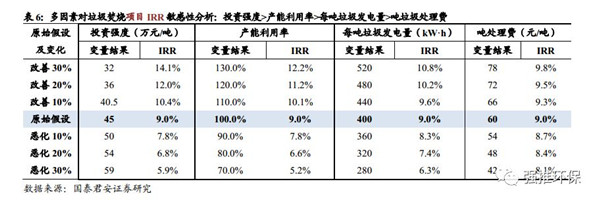 通過對典型垃圾焚燒項目盈利分析建模與敏感性分析,各種輸入變量中,對項目IRR影響的敏感性排序為,單位產(chǎn)能投資強(qiáng)度>產(chǎn)能利用率>每噸垃圾發(fā)電量>噸垃圾處理費。