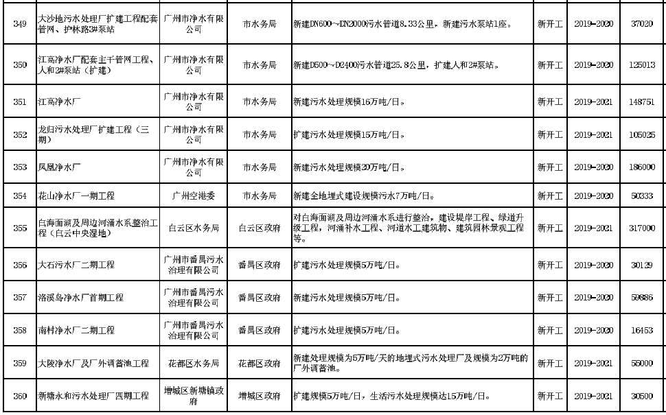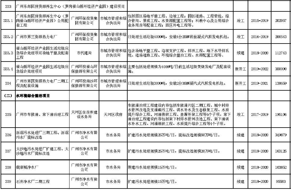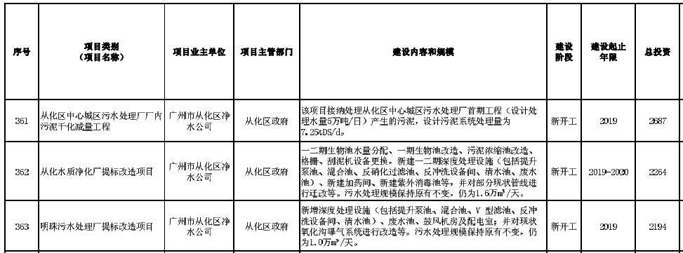 廣州市2019年重點(diǎn)建設(shè)項(xiàng)目計(jì)劃(環(huán)保項(xiàng)目)