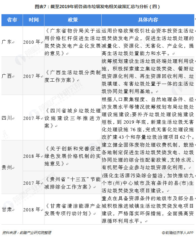 2018年各省市垃圾發(fā)電政策匯總