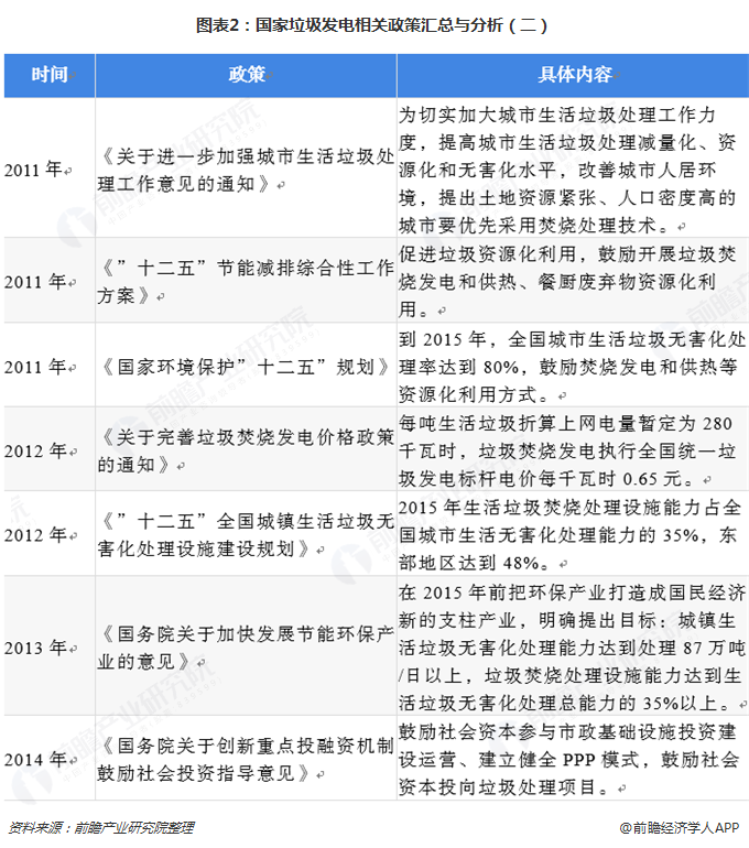 2018年國家垃圾發(fā)電政策匯總