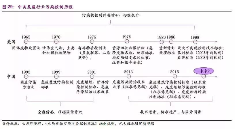 在中國對(duì)危廢污染進(jìn)行控制的時(shí)期,美國相關(guān)產(chǎn)業(yè)已發(fā)展成熟。因此,中國在短短幾年內(nèi)先后推出危廢焚燒、填埋、貯存污染控制標(biāo)準(zhǔn),同時(shí)對(duì)危廢名錄和跨省轉(zhuǎn)移審批制度進(jìn)行借鑒,建立起整套相對(duì)成熟的技術(shù)和標(biāo)準(zhǔn)體系。