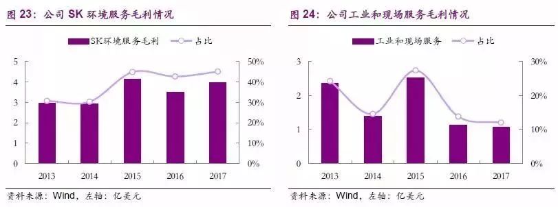 SK環(huán)境及性能產(chǎn)品服務(wù)的重要性在逐步提升。公司在2012年收購Safety-Kleen 后,SK 環(huán)境及性能產(chǎn)品服務(wù)成為了繼傳統(tǒng)危廢技術(shù)服務(wù)之外的第二大業(yè)務(wù),雖然業(yè)務(wù)收入絕對(duì)額變化不大,但業(yè)務(wù)收入占比逐年上升,且該項(xiàng)業(yè)務(wù)為公司帶來了可觀的毛利,甚至超過了傳統(tǒng)的危廢處置業(yè)務(wù),2017年該項(xiàng)業(yè)務(wù)毛利占比達(dá)45.12%,是公司業(yè)績的重要支撐。2016年,公司為了更好地提供一站式服務(wù),以2.048億美元戰(zhàn)略性收購與石油產(chǎn)品銷售相關(guān)的7家公司業(yè)務(wù),使廢油業(yè)務(wù)形成供-產(chǎn)-銷一體化的經(jīng)營模式。廢油一旦收集完畢,就會(huì)被送到煉油廠進(jìn)行處理,清除掉所有的污染物和雜質(zhì),再作為公司的產(chǎn)品返回市場(chǎng)。廢油業(yè)務(wù)的全產(chǎn)業(yè)鏈覆蓋將進(jìn)一步最大化廢油業(yè)務(wù)的利益獲取。