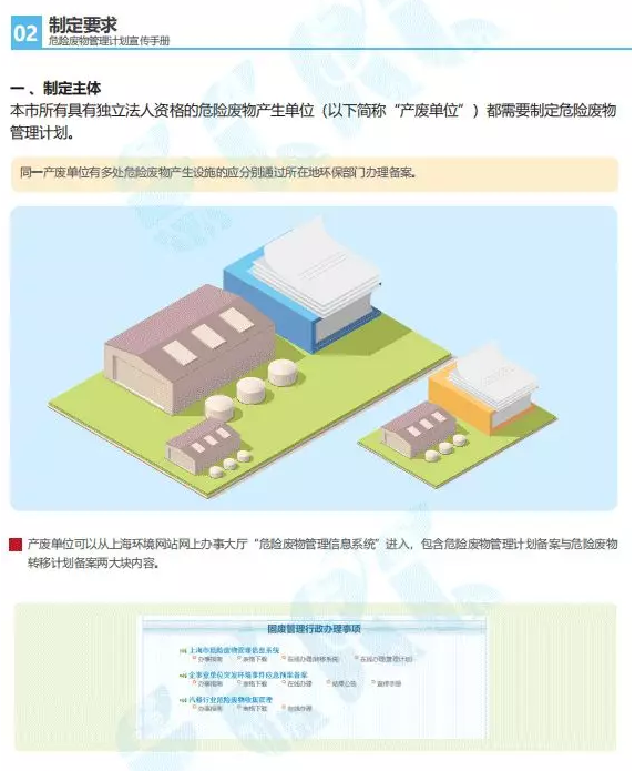 02 制定“危險(xiǎn)廢物管理計(jì)劃”的責(zé)任主體和編制方法;