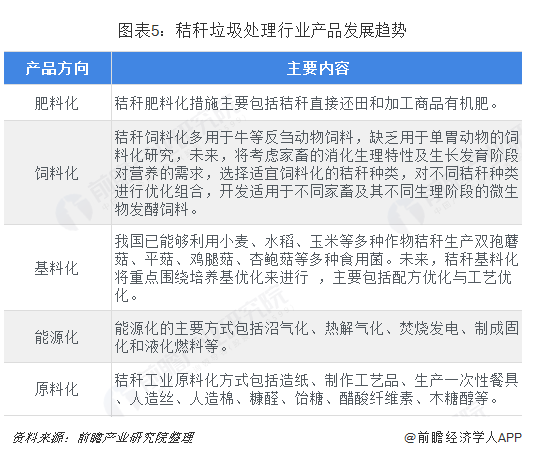 其次,在產(chǎn)品趨勢方面,秸稈綜合利用行業(yè)產(chǎn)品仍將圍繞“五化”展開,即秸稈肥料化、秸稈飼料化、秸稈能源化、秸稈原料化以及秸稈基料化。