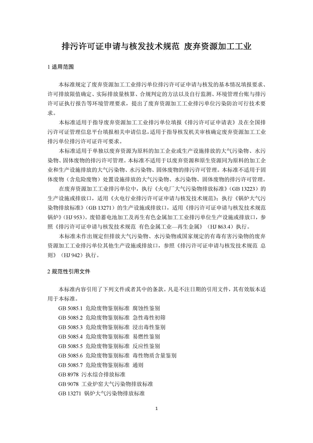 2.排污許可證申請(qǐng)與核發(fā)技術(shù)規(guī)范 廢棄資源加工工業(yè)(征求意見稿)