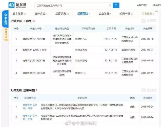 該公司共有6條行政處罰信息,處罰原因?yàn)檫`反固體廢物管理制度、違反環(huán)境影響評(píng)價(jià)制度、違反大氣污染防治管理制度等。2018年曾因涉及13項(xiàng)安全隱患,被國(guó)家安全監(jiān)管總局辦公廳發(fā)函督促整改。