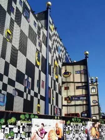 在奧地利首都維也納市區(qū)北部,多瑙運河岸邊的施比特勞區(qū)域,有一座由奧地利著名建筑設計師“百水先生”設計的“怪房子”。它有著童話般的建筑外觀,歪歪扭扭的輪廓線條,外墻上還打著彩色的“補丁”,屋頂上種植著樹木花草……是施比特勞區(qū)域的一座標志性建筑。