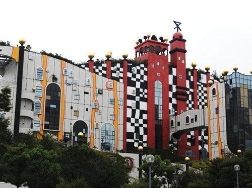 舞洲垃圾焚燒廠的外觀設計同出自奧地利著名的生態(tài)建筑設計師“百水先生”之手,黃色和紅色的條紋象征著燃燒的烈焰,曲線的設計和綠色植物的設計,減少了鋼筋水泥建筑帶給人的冰冷感覺,體現(xiàn)了建筑與自然的融合。如今,這座建筑已然成為大阪市獨樹一幟的地標性建筑。