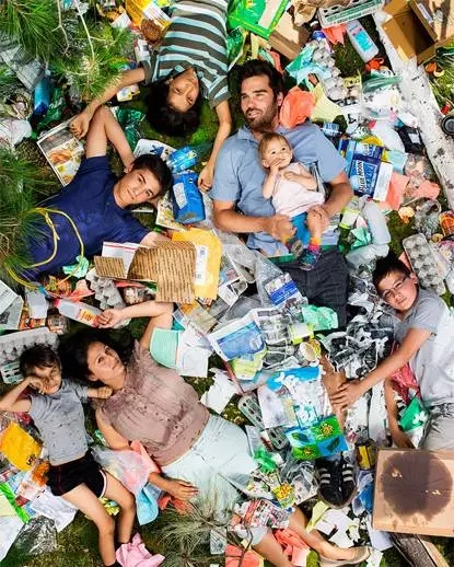 三年前,美國(guó)加州攝影師Gregg Segal曾邀請(qǐng)了幾個(gè)擁有不同背景的家庭與他們?cè)谝恢軆?nèi)制造出的垃圾合影。這組名為《7天垃圾》的系列攝影作品一度在網(wǎng)上走紅。