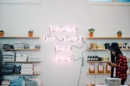 這里的一切商品都沒(méi)有包裝——正如店名,“Package Free Shop”。一踏進(jìn)店里,墻壁上分外醒目的粉色霓虹燈字樣是“Think Outside The Box”。