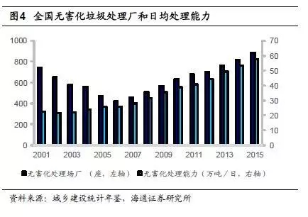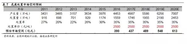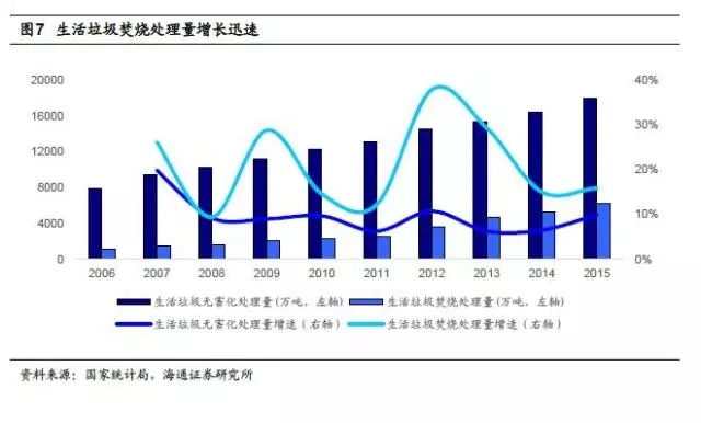 隨著中國(guó)城市化進(jìn)程的加快以及人民生活水平的提高,城鎮(zhèn)生活垃圾迅速增加,垃圾處理缺口巨大,垃圾焚燒將成為主要的生活垃圾處理方式。海通證券研究所預(yù)測(cè),“十三五”期間“工程+運(yùn)營(yíng)”市場(chǎng)接近3000億。另一方面,危廢處理能力的不足,使危廢行業(yè)擁有廣闊的市場(chǎng)空間。