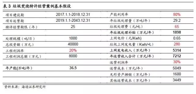BOT模式下,垃圾焚燒項(xiàng)目的收入主要來(lái)自建設(shè)階段的工程收入和運(yùn)營(yíng)階段的運(yùn)營(yíng)收入。垃圾焚燒發(fā)電項(xiàng)目運(yùn)營(yíng)階段收入主要為垃圾處理費(fèi)(政府補(bǔ)貼)以及上網(wǎng)發(fā)電收入。不同項(xiàng)目的垃圾處理費(fèi)價(jià)格差異較大,大致在50-150元/噸的區(qū)間里,目前大部分項(xiàng)目的平均水平在60-80元/噸。根據(jù)2012年4月發(fā)布的《國(guó)家發(fā)展改革委關(guān)于完善垃圾焚燒發(fā)電價(jià)格政策的通知》,每噸生活垃圾折算上網(wǎng)電量為280千瓦時(shí),執(zhí)行全國(guó)統(tǒng)一垃圾發(fā)電標(biāo)桿電價(jià)每千瓦時(shí)0.65元(含稅,增值稅即征即退);超過(guò)部分電量執(zhí)行當(dāng)?shù)赝惾济喊l(fā)電機(jī)組上網(wǎng)電價(jià)。
