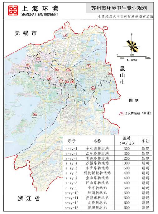 (六)大型轉(zhuǎn)運站設(shè)置規(guī)劃:姑蘇區(qū)規(guī)劃新建5座大中型轉(zhuǎn)運站;高新區(qū)規(guī)劃新建3座大中型轉(zhuǎn)運站;工業(yè)園區(qū)規(guī)劃新建3座大中型轉(zhuǎn)運站;相城區(qū)、吳中區(qū)分別新建1座大中型轉(zhuǎn)運站。