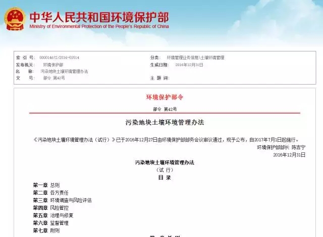 《污染地塊土壤環(huán)境管理辦法》