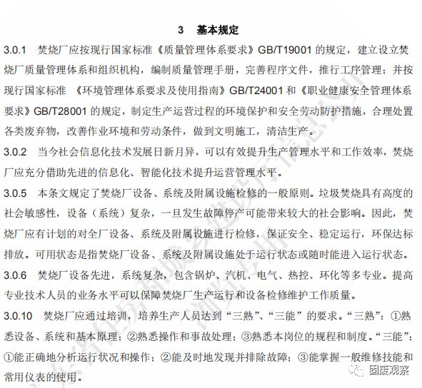 3.0.1 焚燒廠運營管理應(yīng)推行《質(zhì)量管理體系》GB/T 19001、《職業(yè)健康安全管理體系》 GB/T 28001 和《環(huán)境管理體系》GB/T 24001。