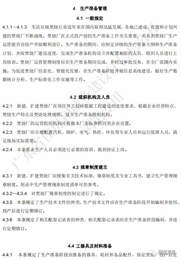 4.3.1 新建、擴建焚燒廠應(yīng)建立生產(chǎn)管理規(guī)章制度,可參考附錄的制度清單編寫。