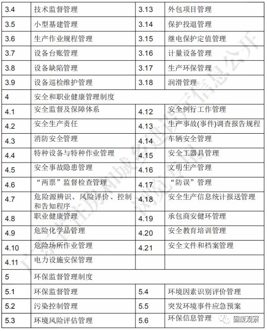 4.3.4 生產(chǎn)管理制度應(yīng)包括但不限于安全管理制度、運行管理制度、檢修管理制度、安 全和職業(yè)健康管理制度、環(huán)保監(jiān)督管理制度等。