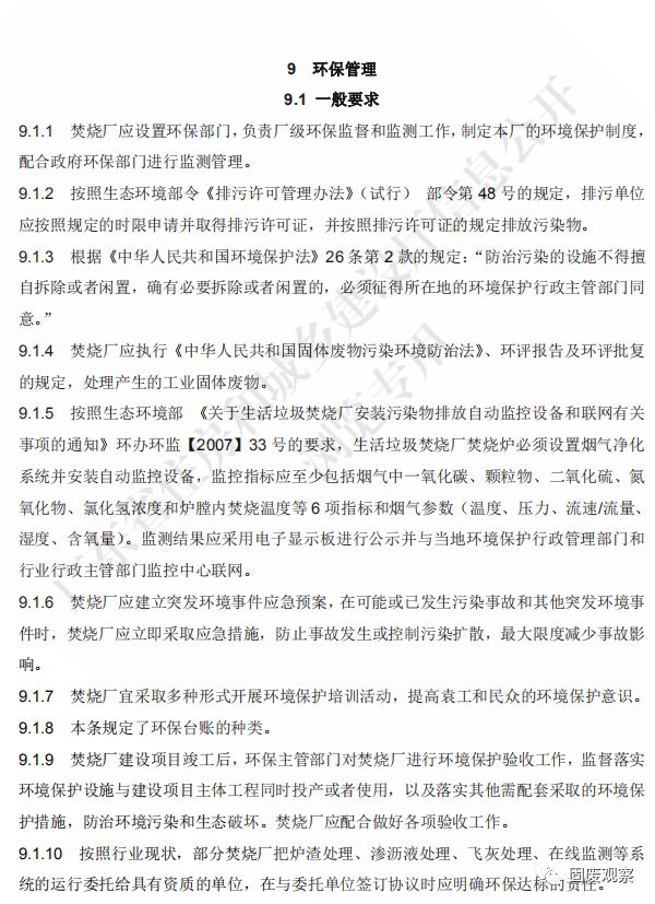 9.1.1 焚燒廠應(yīng)按有關(guān)規(guī)定建立環(huán)境保護責任制度,明確單位負責人和相關(guān)人員的責任, 配置專職環(huán)保管理人員。