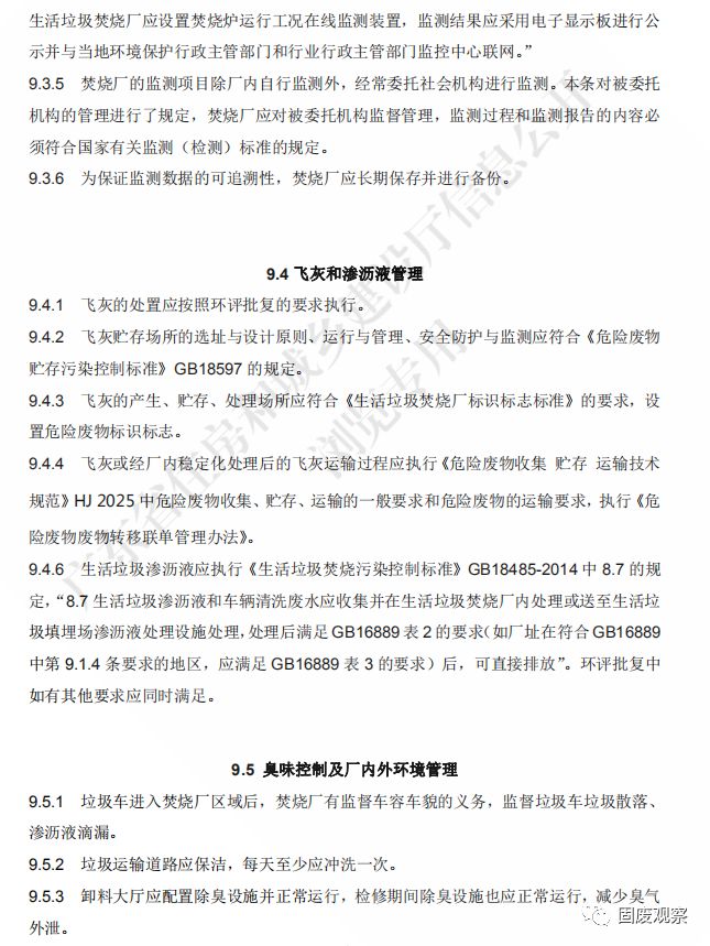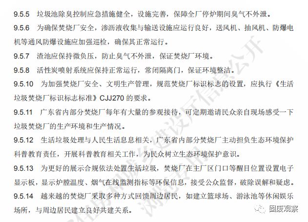 9.1.11 對焚燒廠內(nèi)產(chǎn)生的固體廢棄物的處理處置應(yīng)符合國家現(xiàn)行標準《固體廢物處理處 置工程技術(shù)導(dǎo)則》HJ2035 的有關(guān)規(guī)定。