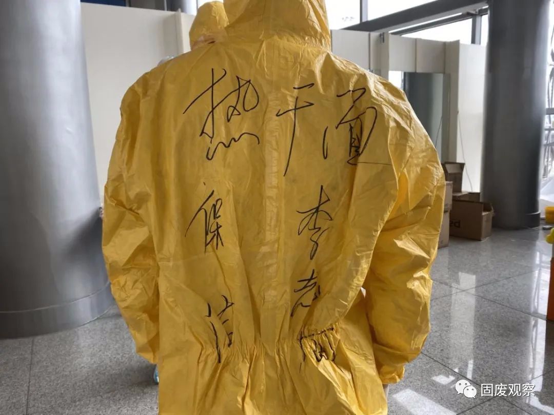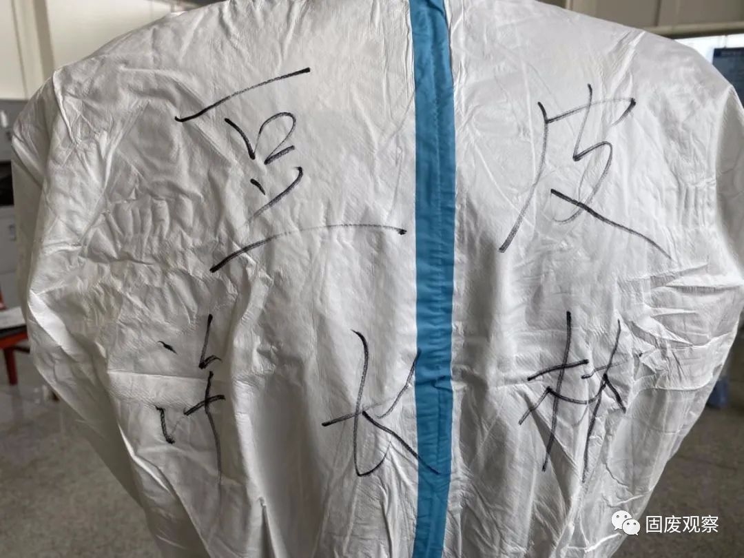 許長(zhǎng)林將他的姓名和“綽號(hào)”寫在防護(hù)服外