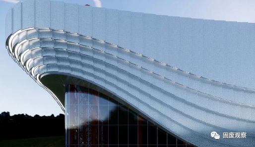 項目的精神內(nèi)涵受到‘藝術(shù)品發(fā)布會’的啟發(fā),當(dāng)藝術(shù)品揭幕那一刻,人們的期待與興奮達(dá)到頂點,本項目在建筑形式上試圖營造這樣一種時刻與氛圍:廠房的建筑表皮采用柔美動感的形式,依據(jù)發(fā)電廠工藝設(shè)備的高低起伏,將廠房和煙囪包裹為一個優(yōu)美的整體,猶如一張正在揭開的帷幕,將廠房內(nèi)部的機(jī)器作為‘藝術(shù)品’一般,半遮半現(xiàn)地展示給到訪的公眾。