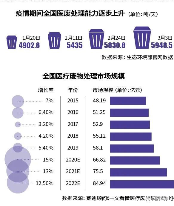 壓力之下,整個(gè)醫(yī)廢處理產(chǎn)業(yè)在短時(shí)間內(nèi)被調(diào)動(dòng)了起來(lái),緊急擴(kuò)大了醫(yī)廢處理產(chǎn)能。