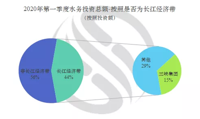 一季度水務(wù)市場(chǎng)區(qū)域分布:長(zhǎng)江經(jīng)濟(jì)帶占比總體市場(chǎng)份額44%,其中15%為三峽集團(tuán)獲得。(6)