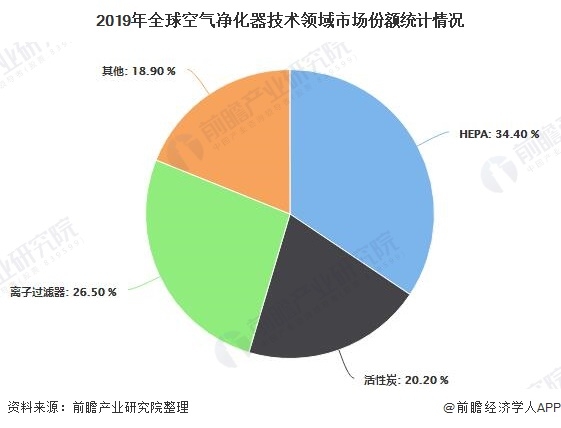 基于技術,空氣凈化器市場細分為HEPA,活性炭,離子過濾器等。從市場情況來看,2019年HEPA技術領域占有最大的市場份額,因為HEPA過濾器非常有效地捕獲空氣中的顆粒,例如灰塵,花粉,煙霧和生物污染物。