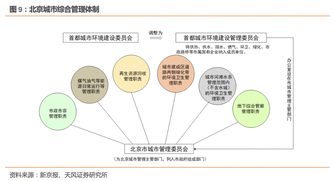 2.3.2. 業(yè)務(wù)范圍向城市物業(yè)管理方向發(fā)展城市綜合管理將有助于環(huán)衛(wèi)項(xiàng)目向一體化方向發(fā)展,綠化養(yǎng)護(hù)、照明維護(hù)等更多內(nèi)容被打包進(jìn)來(lái),環(huán)衛(wèi)企業(yè)面臨的市場(chǎng)空間逐步擴(kuò)容。2020年一季度疫情期間,各地環(huán)衛(wèi)企業(yè)承擔(dān)了臨時(shí)的消毒消殺工作,工作量提升至平時(shí)兩倍,環(huán)衛(wèi)一線工人作為城市綜合管理的預(yù)備軍,將在未來(lái)承擔(dān)更多城市管理的職能。- 城市綜合管理服務(wù)案例——北京通州環(huán)衛(wèi)一體化項(xiàng)目