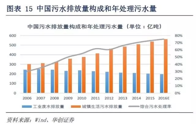 中國(guó)污水排放量構(gòu)成和年處理污水量