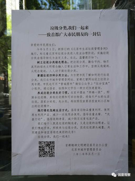垃圾分類的宣傳和指導(dǎo)如何進(jìn)一步加強(qiáng)?藍(lán)藍(lán)天工作室記者觀察自己所在的小區(qū)發(fā)現(xiàn),設(shè)了分類垃圾桶,旁邊沒有專業(yè)指導(dǎo)人員,居民分不分類、分得對(duì)不對(duì),基本全憑自覺。上海市剛推行垃圾分類的時(shí)候,經(jīng)常有志愿者站在垃圾桶旁問前來投放的居民“你是什么垃圾”。為啥北京很多小區(qū)目前沒人問這樣的問題?國務(wù)院發(fā)展研究中心資源與環(huán)境政策研究所副所長常紀(jì)文表示,從5月1日《條例》開始執(zhí)行后,他天天去附近小區(qū)拍照檢查。總體看來垃圾分類已經(jīng)起步了,各小區(qū)基本都配備了廚余垃圾桶等,但仍然存在一些問題。例如,部分小區(qū)內(nèi)沒有宣傳橫幅,分類垃圾桶邊沒有配備專人進(jìn)行指導(dǎo)監(jiān)督。一些小區(qū)宣傳和指導(dǎo)不到位,導(dǎo)致居民有分類意識(shí),但缺乏分類知識(shí)。“我在不少小區(qū)看到大家把外賣餐盒跟廚余垃圾扔在一起,但它屬于使用過的、沾了菜湯油污的塑料類制品,應(yīng)該投放到其他垃圾桶中?!背<o(jì)文說。在有的小區(qū),為保證每個(gè)分類垃圾桶旁都有指導(dǎo)人員,取消了一些垃圾桶,讓居民走到較遠(yuǎn)的投放點(diǎn)扔垃圾。常紀(jì)文表示,他觀察到一些小區(qū)內(nèi)垃圾桶分布不均勻,有些樓棟下缺少廚余垃圾桶,有些沒有其他垃圾桶,“至少應(yīng)該以某種形式讓居民知曉,小區(qū)內(nèi)哪里有對(duì)應(yīng)的分類垃圾桶,方便精準(zhǔn)投放。”劉建國認(rèn)為,現(xiàn)階段,應(yīng)進(jìn)一步加大宣傳教育和組織動(dòng)員力度,讓垃圾分類真正“熱起來”;層層落實(shí)各級(jí)政府相關(guān)職能部門職責(zé),特別是切實(shí)落實(shí)管理責(zé)任人責(zé)任,將壓力和責(zé)任傳導(dǎo)到每個(gè)居民,讓垃圾分類“硬起來”;統(tǒng)籌疫情防控和垃圾分類兩項(xiàng)工作,讓二者有機(jī)結(jié)合,互相促進(jìn),讓垃圾分類“動(dòng)起來”;北京的黨政機(jī)關(guān)、高??蒲性核⑵髽I(yè)總部、社會(huì)組織密集,應(yīng)帶頭做好源頭減量和垃圾分類,為居民作出表率、增添信心,讓垃圾分類“亮起來”。“未來,要從執(zhí)法保障、政策激勵(lì)、長效機(jī)制、科學(xué)管理、多元共治、科技支撐等不同層面,不斷完善和優(yōu)化垃圾分類投放、收集、運(yùn)輸、處理全鏈條,倒逼生產(chǎn)生活環(huán)節(jié)源頭減量,分類物品物盡其用各得其所,降低垃圾分類的綜合社會(huì)成本,促進(jìn)居民養(yǎng)成良好習(xí)慣,提升社會(huì)文明水平?!眲⒔▏f。上圖:北京市有關(guān)部門致市民的一封信。(劉毅攝) 如何避免運(yùn)輸和處置中出現(xiàn)混裝混運(yùn)現(xiàn)象?不少居民表示,推行生活垃圾強(qiáng)制分類以來,自己所在的小區(qū),垃圾分類的宣傳力度明顯加強(qiáng),做到了分類投放、分類運(yùn)輸。然而,也有居民表示,自己辛辛苦苦分好類,甚至把快遞盒上的膠帶都刮下來按類別投放,結(jié)果發(fā)現(xiàn)垃圾車還是把所有垃圾一股腦混倒在一起運(yùn)走。劉建國表示,“前端分類,后端混合”是個(gè)廣受詬病的老問題,實(shí)際上是垃圾分類系統(tǒng)前后端不配套造成的?!侗本┦猩罾芾?xiàng)l例》中約束的一個(gè)主要對(duì)象,是從事垃圾收集運(yùn)輸處理的企業(yè),處罰門檻很低,處罰力度很大,就是為了解決先分后混、混裝混運(yùn)的問題。“居民看到混裝混運(yùn)現(xiàn)象,可以馬上投訴,督促企業(yè)做好分類收集運(yùn)輸處理。當(dāng)然,咱們自己也要做好分類投放,不能以混裝混運(yùn)為借口而不履行義務(wù)。只有大家各負(fù)其責(zé),才能徹底杜絕混裝混運(yùn)現(xiàn)象。”劉建國說。常紀(jì)文認(rèn)為,前端后端匹配才符合垃圾分類的目的。對(duì)此需要標(biāo)本兼治:治本,需建設(shè)相匹配的廚余垃圾處置設(shè)施以及干垃圾的焚燒或填埋設(shè)施。治標(biāo),應(yīng)采取嚴(yán)格的處罰措施,沒有處罰,小區(qū)物業(yè)和環(huán)衛(wèi)部門往往會(huì)存有僥幸心理,使垃圾分類工作停滯不前;只有嚴(yán)格執(zhí)行懲處措施,才能對(duì)垃圾分類執(zhí)行方起到震懾作用,后端的各個(gè)環(huán)節(jié)才能順暢配合。為更好解決后端混運(yùn)問題,常紀(jì)文還建議,改良垃圾運(yùn)輸車輛?!皻W洲有許多垃圾分類車輛是能同時(shí)運(yùn)輸兩種垃圾的,我們也可以在設(shè)計(jì)方面做些改動(dòng),在車輛內(nèi)部進(jìn)行分隔,讓一輛車既可以運(yùn)廚余垃圾也可以運(yùn)其他垃圾,降低成本的同時(shí),方便操作?!?/span>劉建國認(rèn)為,疫情防控與垃圾分類這兩件事并不沖突?,F(xiàn)在疫情防控已經(jīng)進(jìn)入到常態(tài)化階段,可以把疫情防控中形成的好經(jīng)驗(yàn)好做法好機(jī)制,如社區(qū)精細(xì)化管理、居民的規(guī)則意識(shí)和衛(wèi)生習(xí)慣、鄰里之間互相幫助互相監(jiān)督等,順勢(shì)轉(zhuǎn)化為垃圾分類的推動(dòng)力。來源 | 人民日?qǐng)?bào)中央廚房·藍(lán)藍(lán)天工作室