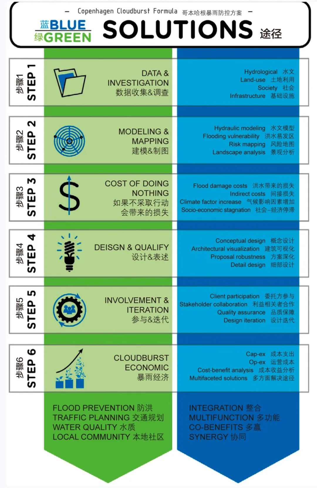 與極端天氣的對抗猶如一場戰(zhàn)爭。但我們必須在開戰(zhàn)前構想愿景,并做出合理的作戰(zhàn)計劃。在編著于公元前5世紀的中國古代軍事寶典《孫子兵法》中,作者就強調(diào)了制定目標與計劃對成功的重要意義(原文為:夫未戰(zhàn)而廟算勝者,得算多也)。這樣的道理同樣也適用于當今城市與暴雨之間的戰(zhàn)爭。我們的目標非常明確——我們希望城市是宜居的,同時可以緩解氣候變化的影響。而若沒有周密合理的計劃,即使投入數(shù)億的資金,我們也只會輸?shù)暨@場戰(zhàn)爭。