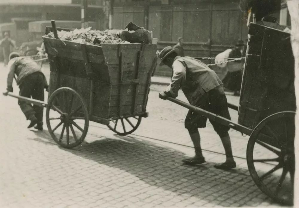 20世紀(jì)30年代,上海街頭的清道夫及垃圾收集車輛