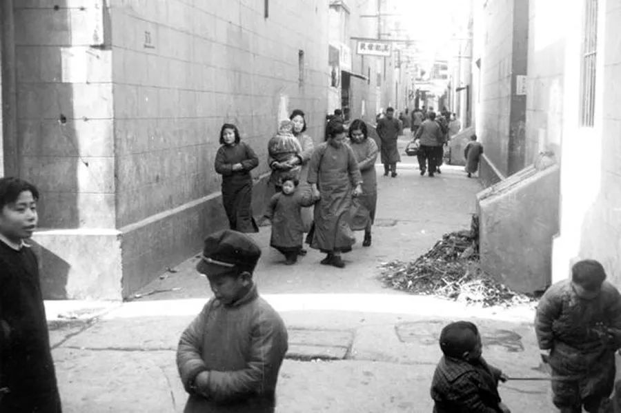 20世紀(jì)40年代,上海某弄堂中的情景。圖中可見每個支弄口都有垃圾箱,但維護(hù)較差,環(huán)境堪憂
