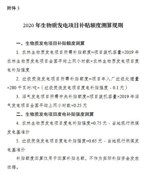 (二)補(bǔ)貼額度測算規(guī)則按補(bǔ)貼額度測算規(guī)則(見附件3)測算生物質(zhì)發(fā)電項(xiàng)目度電補(bǔ)貼強(qiáng)度、項(xiàng)目所需補(bǔ)貼額度。補(bǔ)貼額度測算僅用于測算補(bǔ)貼總額,不作為實(shí)際補(bǔ)貼資金發(fā)放依據(jù)。