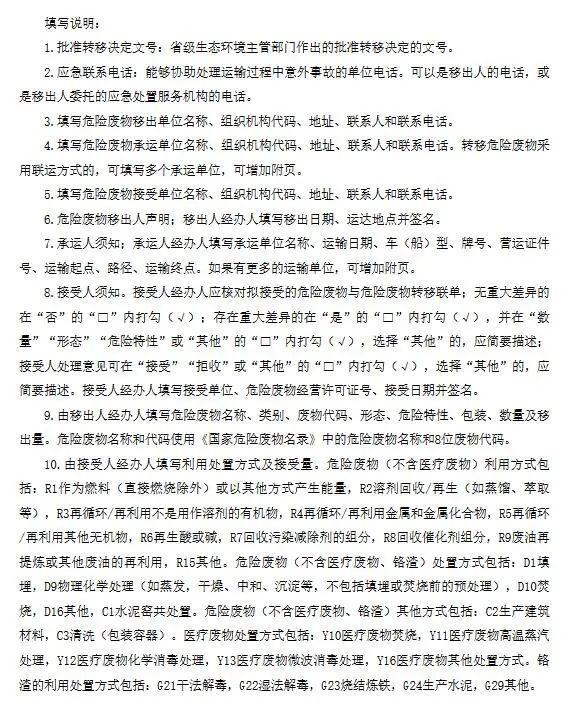 (二)按照本辦法要求填寫危險廢物轉(zhuǎn)移聯(lián)單,與危險貨物運(yùn)單一并交由駕駛員隨車攜帶;
