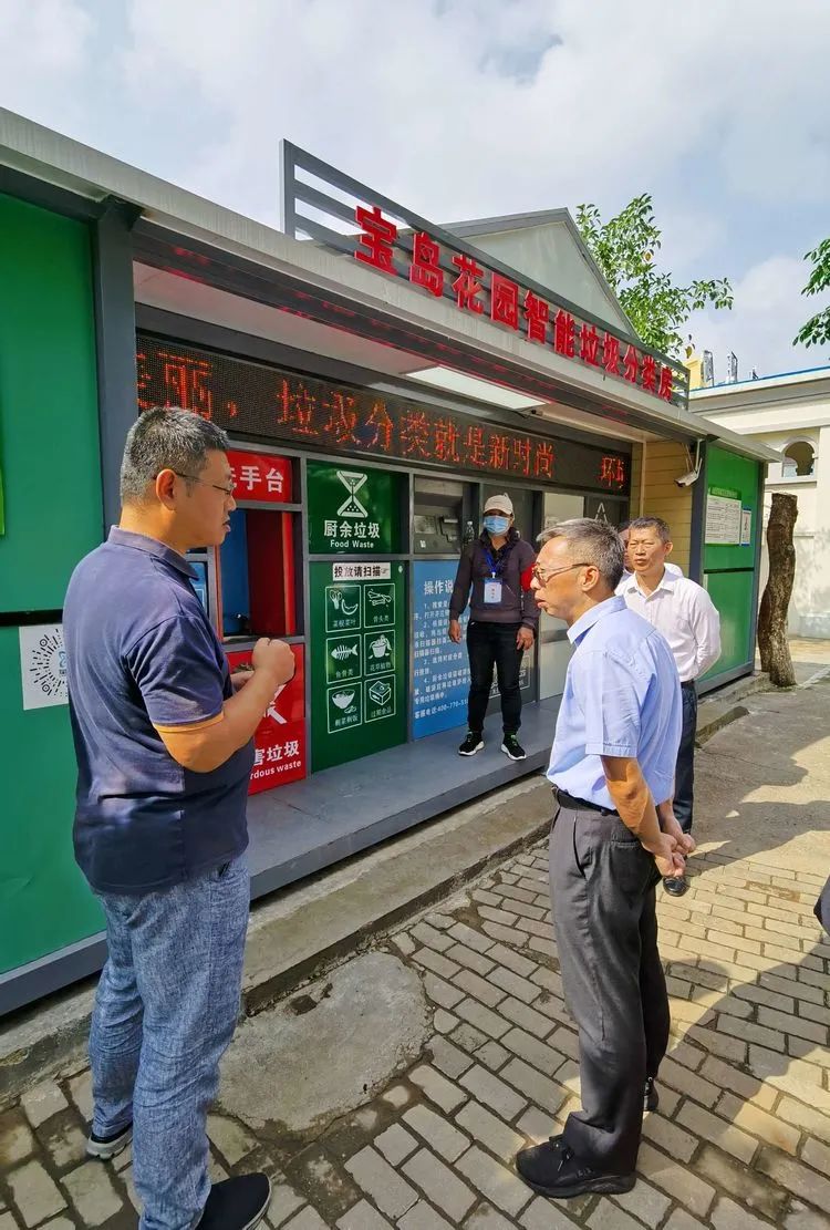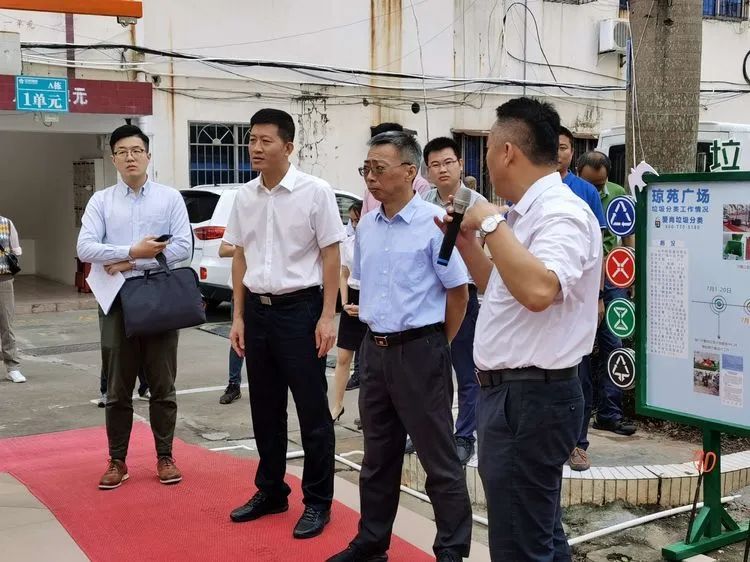 張小宏司長(zhǎng)現(xiàn)場(chǎng)調(diào)研瓊苑廣場(chǎng)小區(qū)垃圾分類開展情況,美蘭區(qū)區(qū)長(zhǎng)陳積衛(wèi)在點(diǎn)上匯報(bào)。