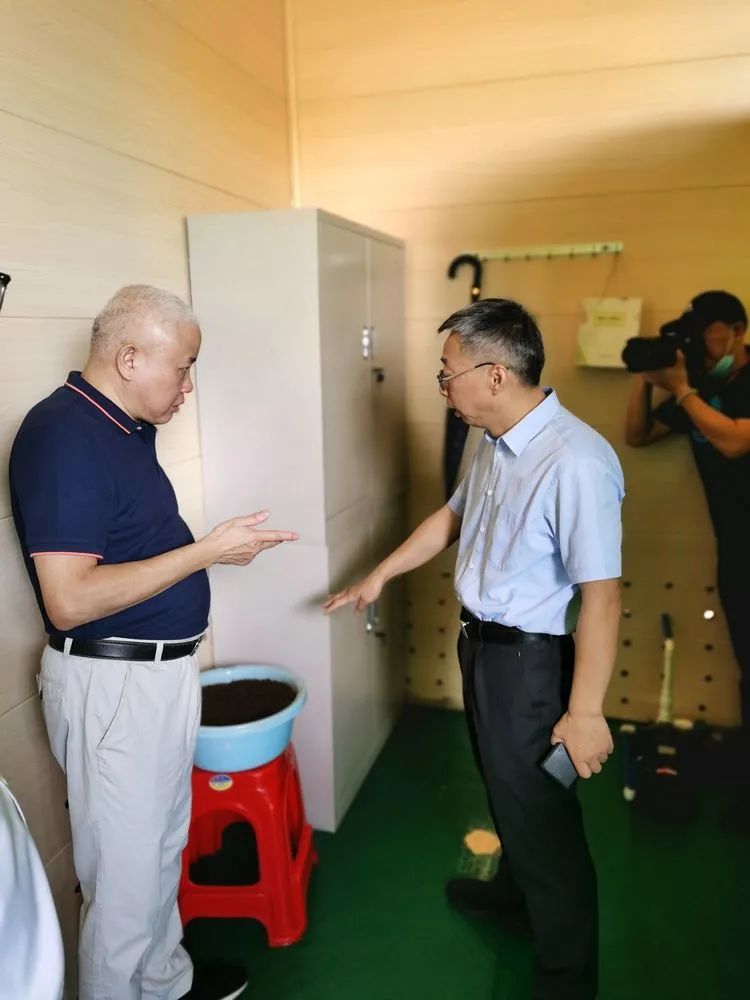 在東風(fēng)橋廚余垃圾源頭減量試點(diǎn),張小宏司長(zhǎng)詳細(xì)了解廚余垃圾源頭處理和資源化利用情況,海南金特爾環(huán)保科技有限公司負(fù)責(zé)人做工藝介紹。