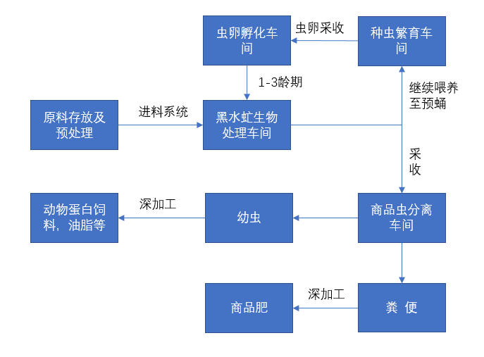 單就養(yǎng)殖技術(shù)來說,雖然控制有一定困難,但技術(shù)沒有多高的壁壘。再從大規(guī)模養(yǎng)殖的工程化角度來講,還有很多需要研究和優(yōu)化的地方。比如:整個(gè)養(yǎng)殖過程,涉及到的物料有餐廚垃圾、輔料、一齡期物料、蟲沙等,不同物料的臨時(shí)存儲(chǔ)、預(yù)處理、輸送、布料,都需要設(shè)計(jì)和考慮。預(yù)處理無機(jī)雜物的分揀,如玻璃、瓷器、塑料、餐具等,需要在一定程度上進(jìn)行考慮。物料的輸送和布料需要考慮,如何精準(zhǔn)的將物料輸送,并均勻平鋪到各個(gè)養(yǎng)殖層架上?又如何實(shí)現(xiàn)幼蟲和蟲糞的自動(dòng)化分離?如何實(shí)現(xiàn)預(yù)蛹的自動(dòng)化采收?當(dāng)然,純粹從技術(shù)角度來講,自動(dòng)化問題也并非不可逾越,但是從商業(yè)角度,投資回報(bào)率也同樣重要,能否實(shí)現(xiàn)收益以及回報(bào)周期,才決定著投資的動(dòng)力。從黑水虻的生長環(huán)境規(guī)劃上講,至少要分為原料及預(yù)處理車間、蟲卵孵化車間、幼蟲處理廢棄物車間、幼蟲分離車間、成蟲繁育車間等。黑水虻幼蟲需要在濕度60%,溫度28℃等條件下生長。成蟲需要在干燥環(huán)境并有縫隙處產(chǎn)卵,而且要根據(jù)蟲體的不同生長階段,對(duì)其進(jìn)行轉(zhuǎn)移。同時(shí),因?yàn)榇x過程產(chǎn)物會(huì)以廢氣和水蒸氣排出,所以項(xiàng)目現(xiàn)場的除濕和換氣需要相關(guān)的設(shè)計(jì)和研究。這就需要從整體角度,對(duì)整個(gè)黑水虻養(yǎng)殖項(xiàng)目的廠房、物料的輸送轉(zhuǎn)運(yùn)、可能產(chǎn)生的二次污染的處理設(shè)施,進(jìn)行合理的規(guī)劃和布局。