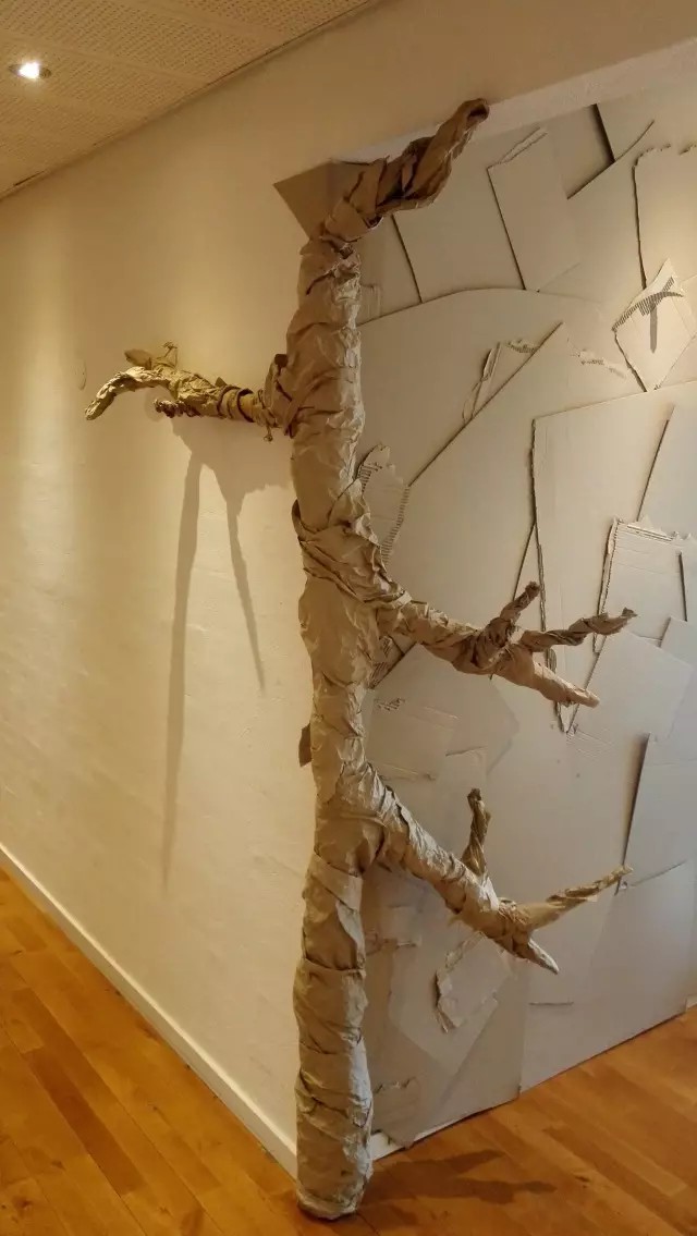 一上二樓直接映入眼簾,利用廢紙做的樹枝及廢紙片墻