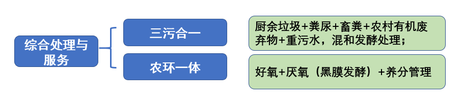 包括兩個(gè)方向的綜合,一是處理廢棄物種類多,包括廚余垃圾,重污水,人糞尿和畜禽糞污、農(nóng)作物秸稈、園林廢棄物、農(nóng)村渣土等協(xié)同處理;二是處理與綜合服務(wù)同時(shí)并舉,建立養(yǎng)分管理服務(wù)中心,將處理產(chǎn)品根據(jù)肥力高低科學(xué)消納與循環(huán)利用。