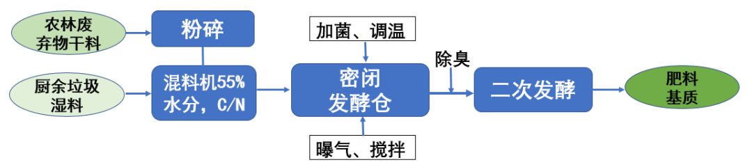 城鄉(xiāng)接合部,城鎮(zhèn)化明顯,人口密度大,垃圾量大,土地資源緊缺,沒(méi)有足夠的農(nóng)田可消納處理廢棄物產(chǎn)物。可選擇占地面積小、日處理效率高、發(fā)酵時(shí)間短的處理方式。